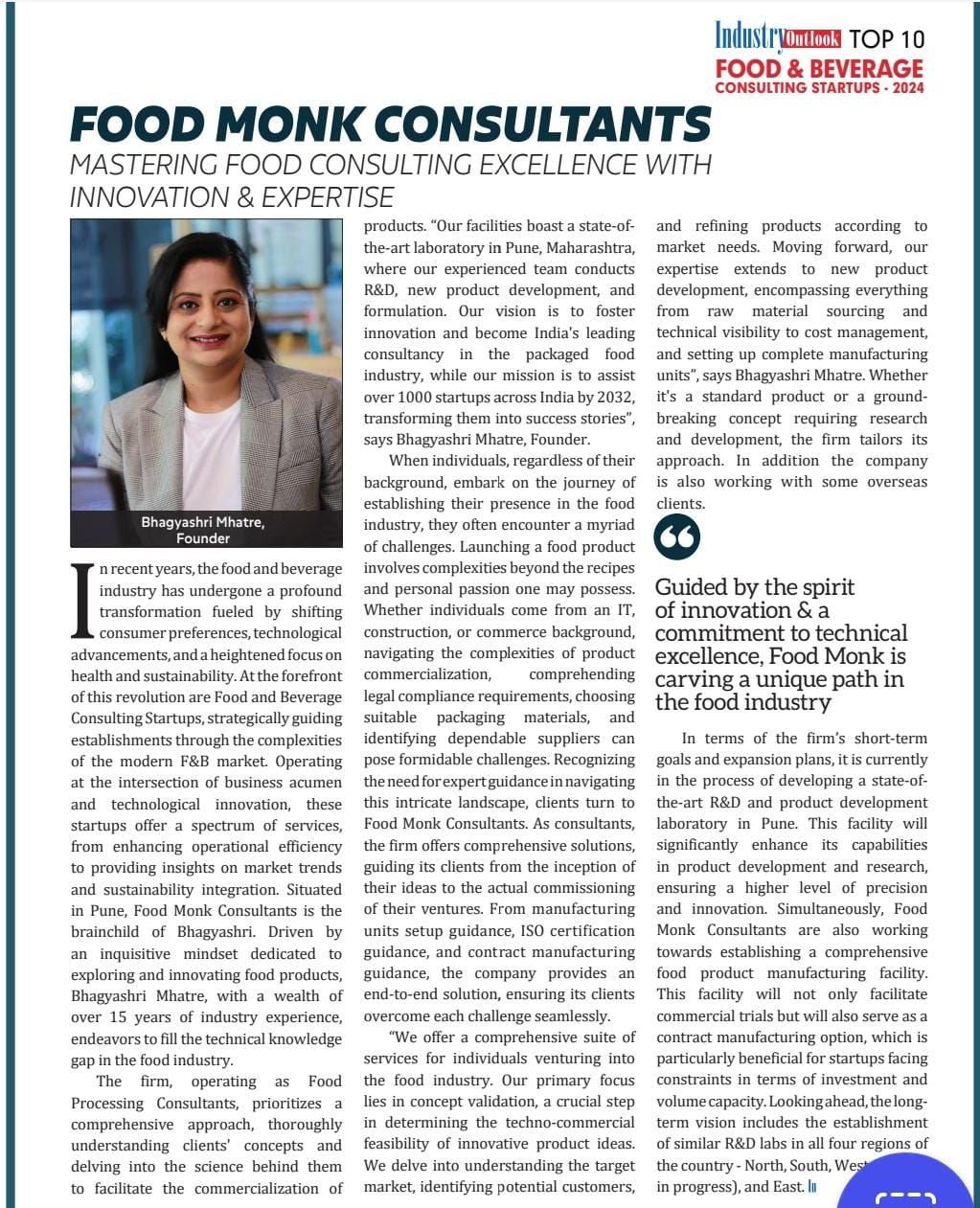 Food Monk Innovations is a brainchild of Ms. Bhagyashri & Dynamic Food Processing Consultants in Pune! With an inquisitive mind to explore and develop food products, she aspires to cater to the need of entrepreneurs.