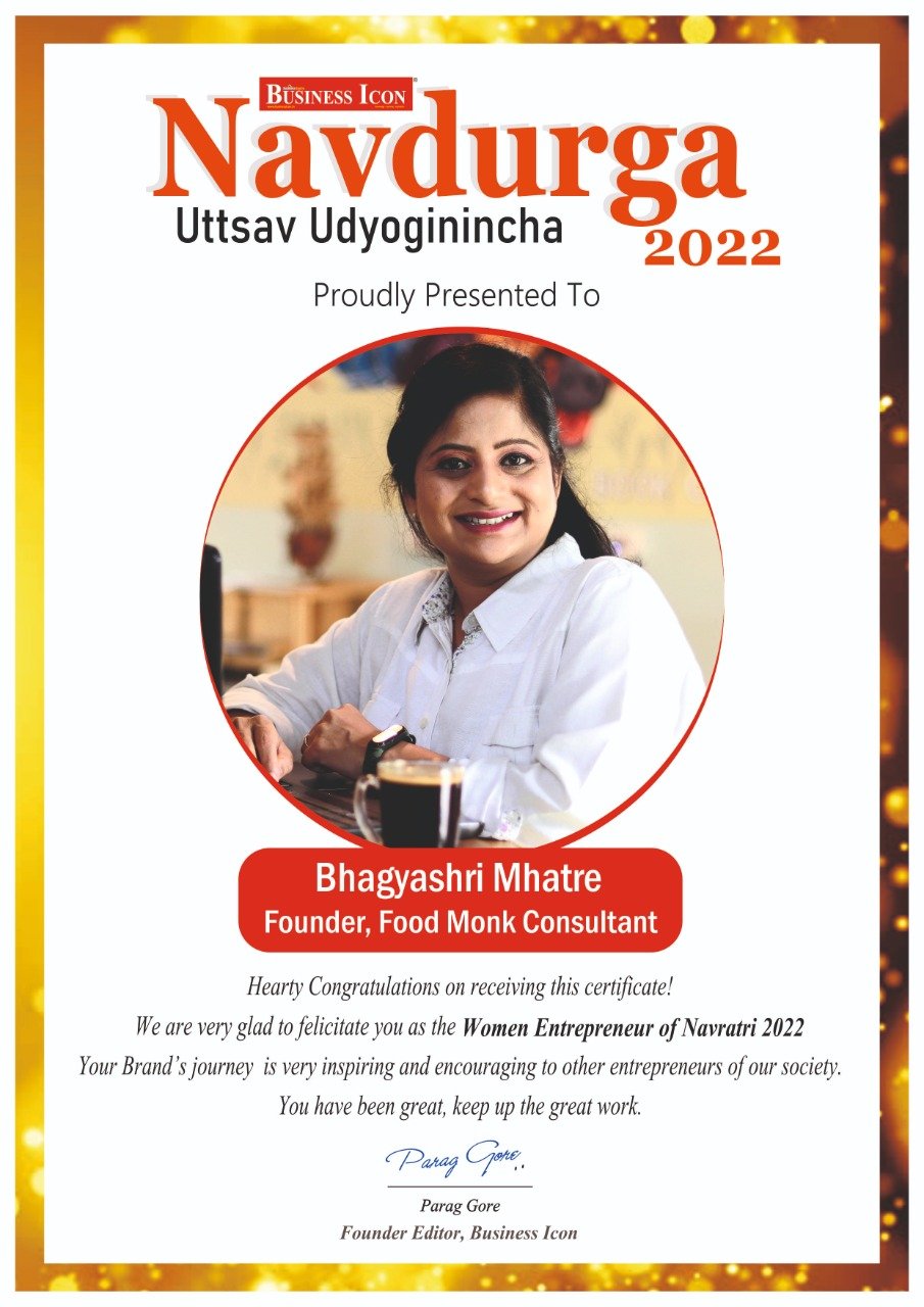 Food Monk Innovations Pvt Ltd is celebrating a tremendous achievement as our founder, Miss Bhagyashree Mhatre got selected to get featured in India’s leading Business magazine ‘Business Icon’ this Navratri.
