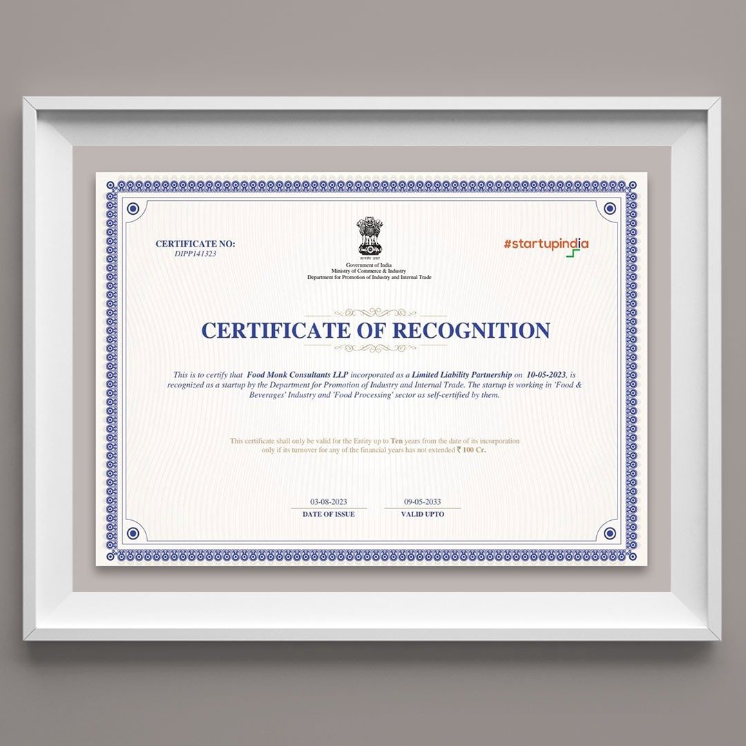 A Proudly Recognized Startup by the Department for Promotion of Industry and Internal Trade. We are thrilled to announce that our culinary journey has achieved this prestigious milestone. Thanks to our team’s dedication and your unwavering support. Together, we are redefining the future of the food industry.
